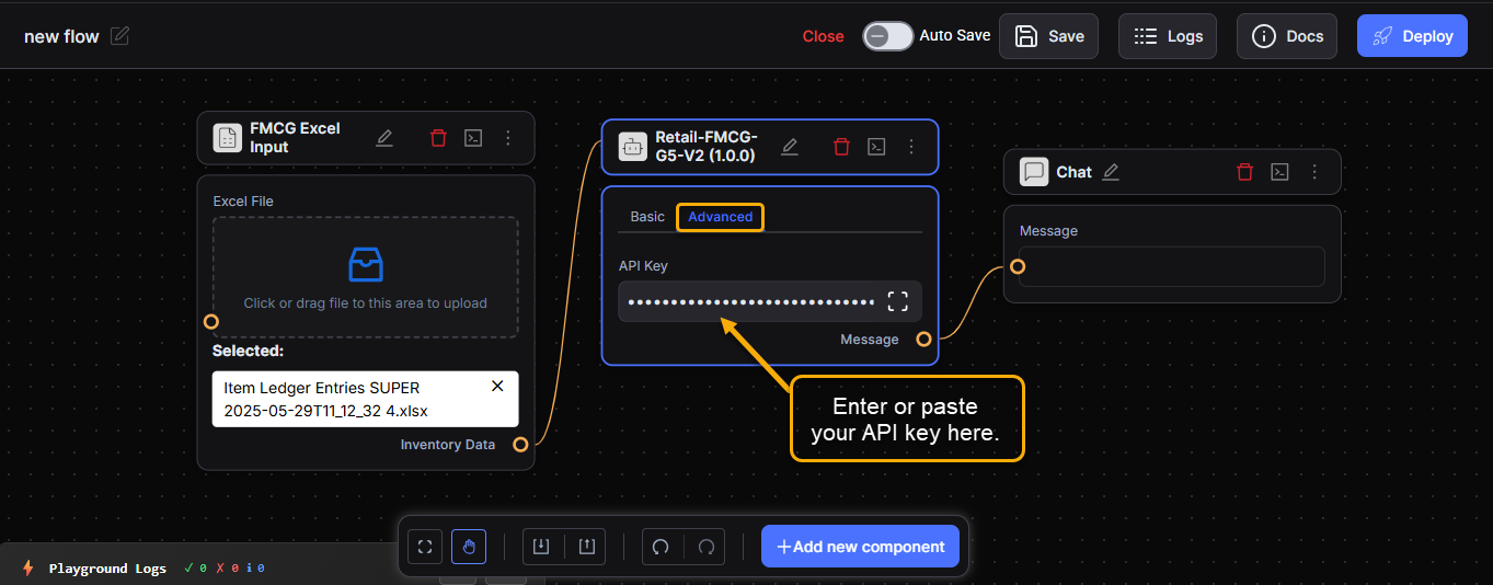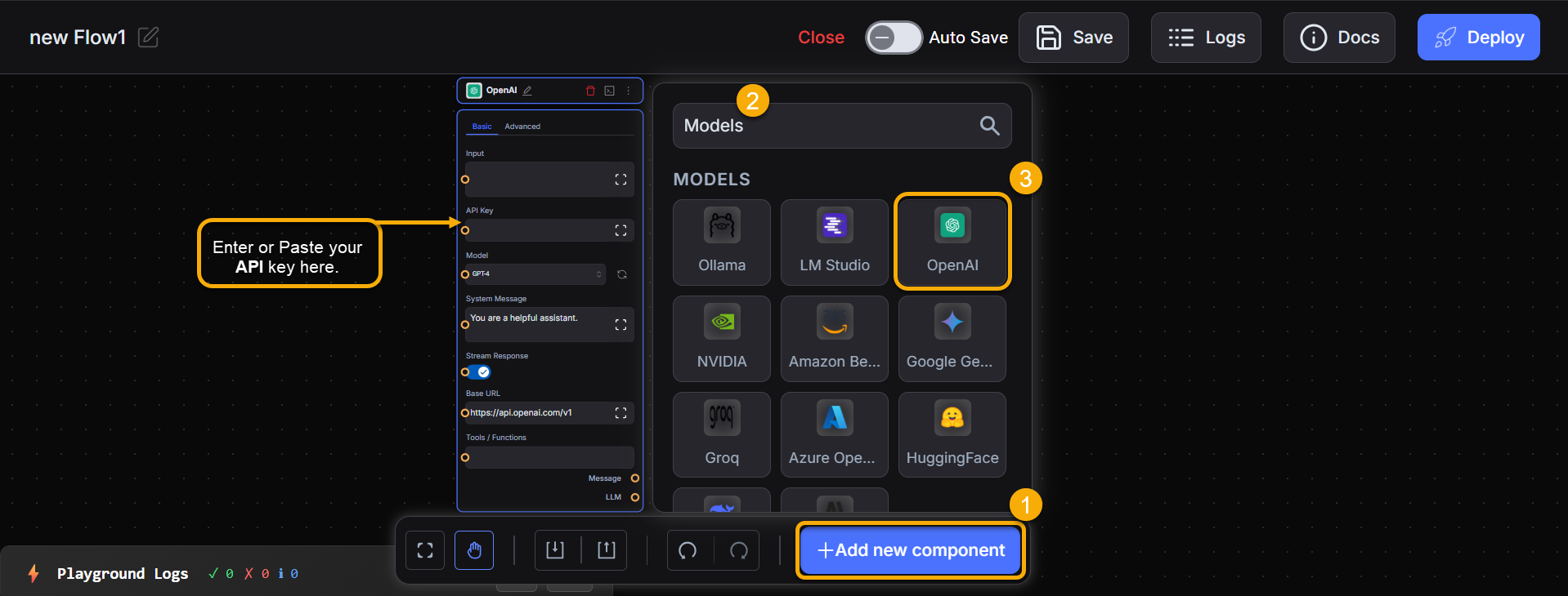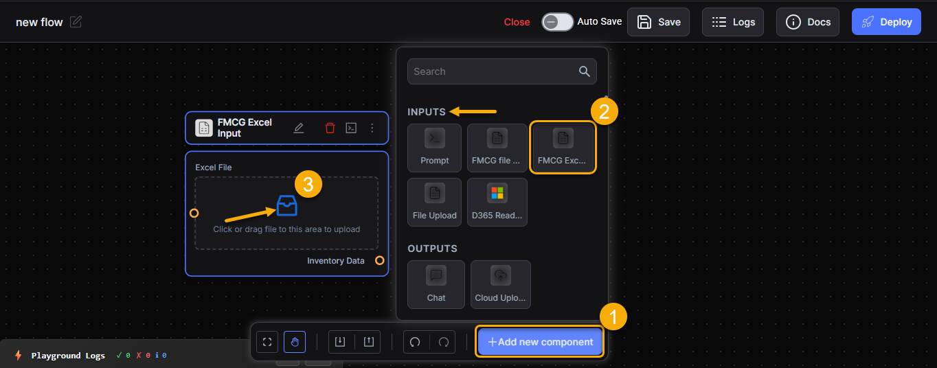 This guide provides detailed instructions on using the Playground and configuring flow components.