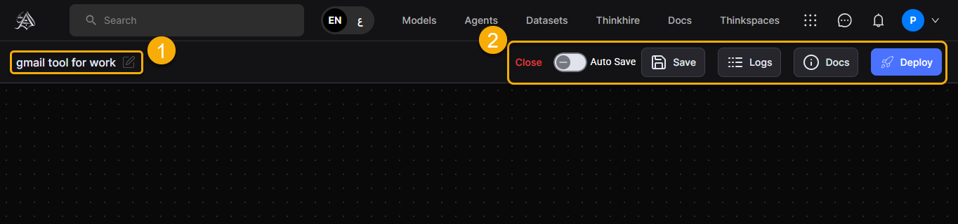 Thinkflow Name – Appears on the left. To rename the Thinkflow, select the Edit (pencil) icon.