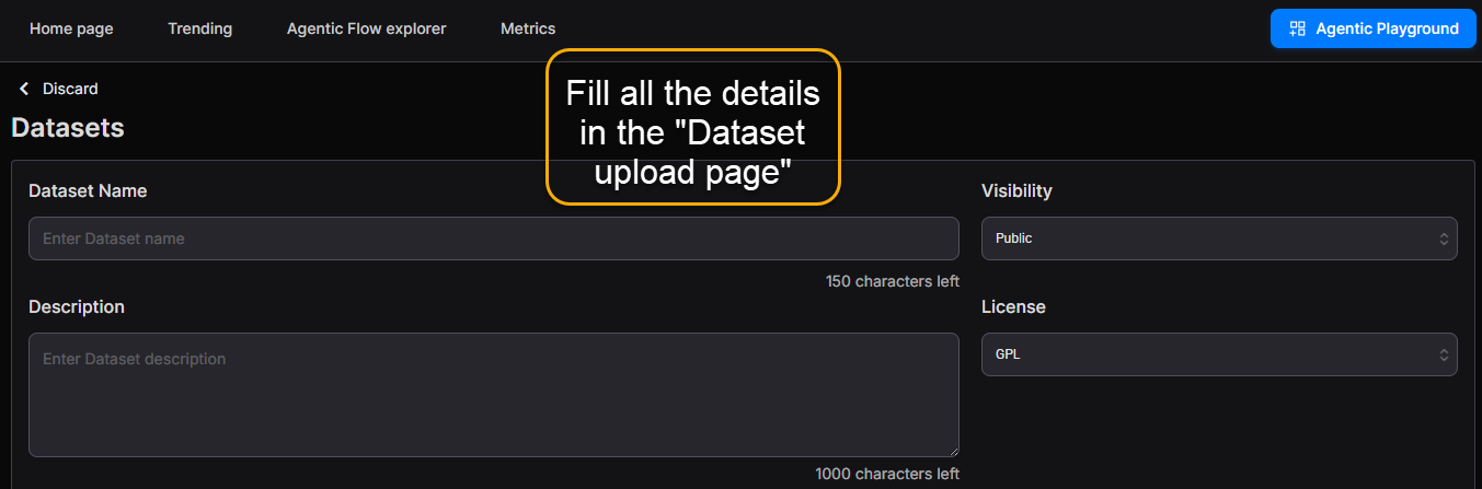 You’ll be directed to the Dataset Upload screen.